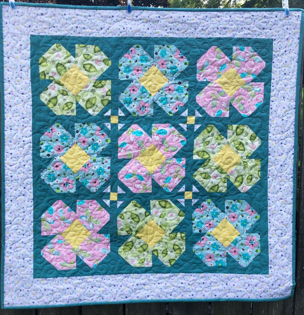 I just love everything about this … the flower blocks, the fun girly fabrics….