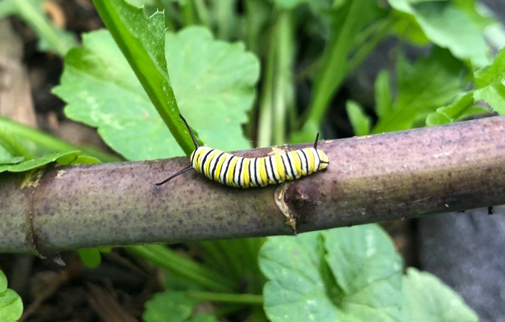 Unfortunately, I wasn’t able to see where any of those caterpillars went to build their cocoons. (They can travel up to 30 feet from their milkweed plant.)