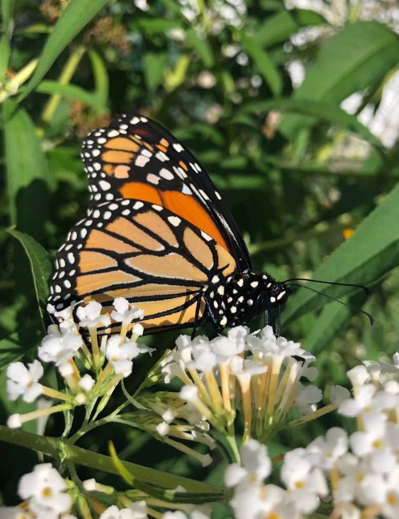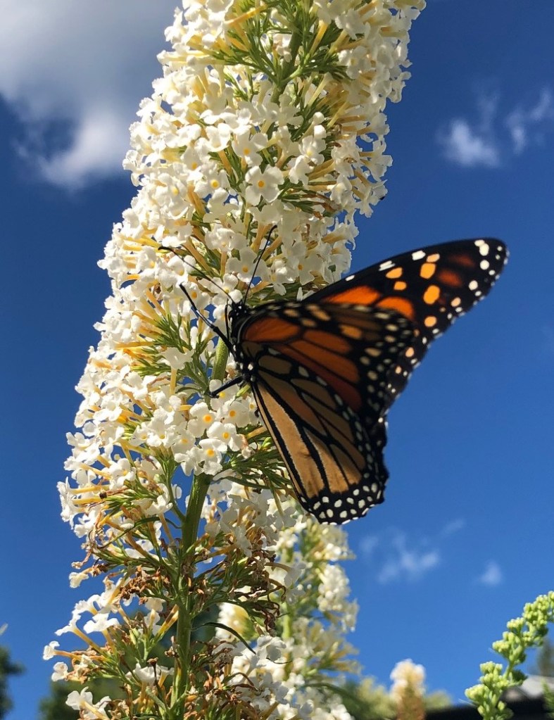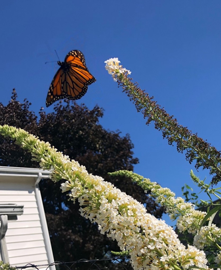 But last week, I started noticing A LOT more Monarchs fluttering about the yard. I think it’s mostly because of the White Butterfly bush. I dont know if it’s the location, or just the breed (White Profusion), but it’s easily three times the size of the Dark Knight Butterfly Bush. And it’s just covered in blooms!!!