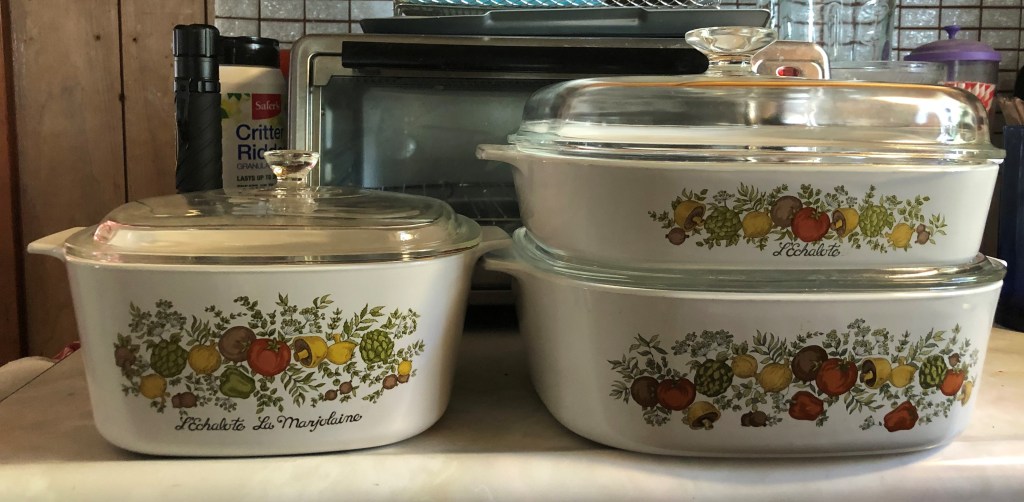 OMGosh…..just seeing those dishes brought a lump to my throat. My grandmother had them all. We always had Thanksgiving at her house and they were always on the table filled with good stuff. I love Corningware. I’ve taken a tour of their factory in NY twice. I just bought some more of their covered mugs which are the best things ever for heating up leftovers.