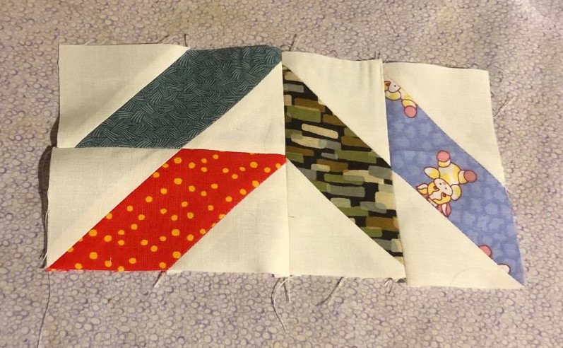 So… I decided to lay out the blocks I had, and figure out what to do. As you may recall, I was laying them out on point. And I figured if I added just two more blocks, I could get a nice design. But what colours?