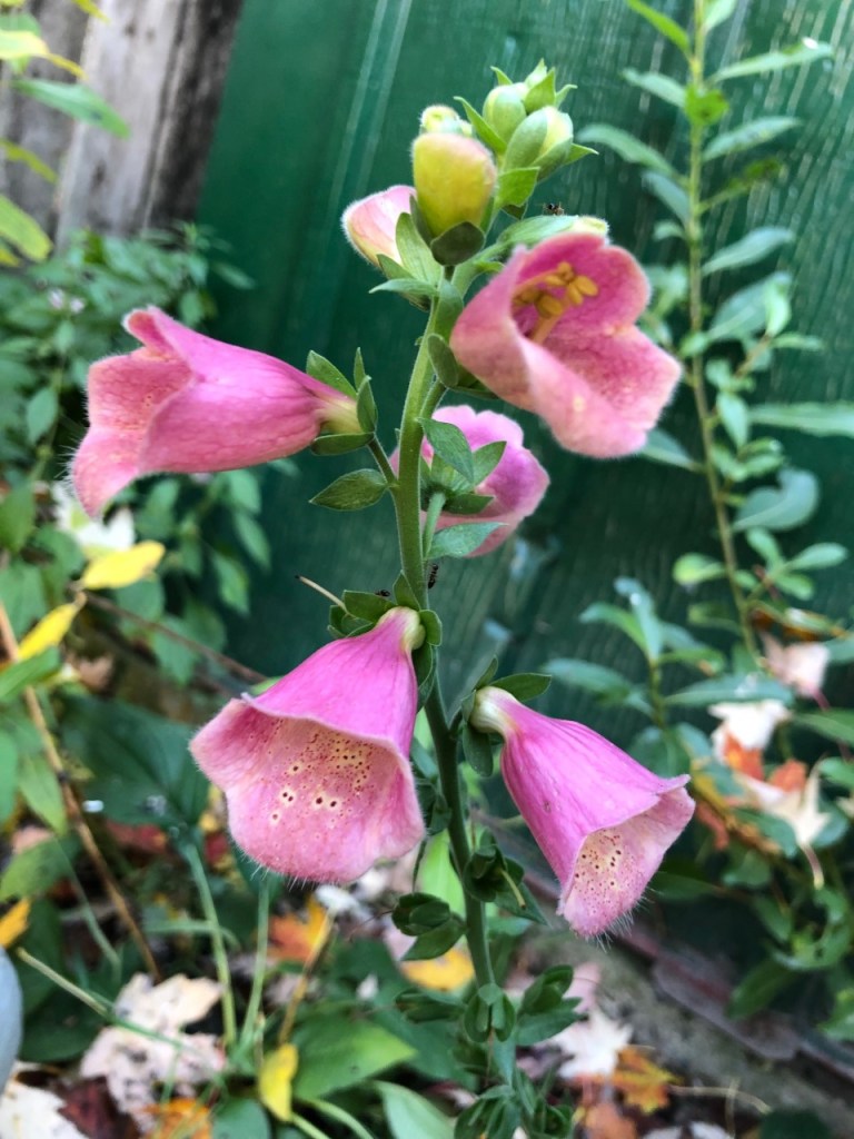 What a beautiful grouping of blooms still–so pretty to see the marigolds and the mums with the foxglove–nice to have some flowers that are so hardy!