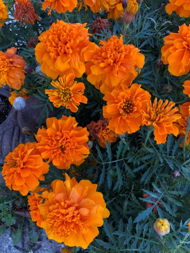 They only thing that stops the marigolds is a good hard frost. I’ve got several clumps out front and I expect they will keep going for a while more.