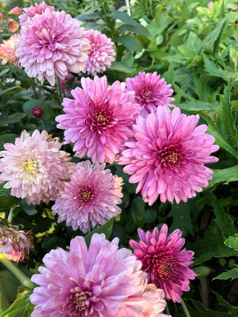 The rest of the mums are pretty much done, but this beautiful pink one in the centre of the catio is still going strong.