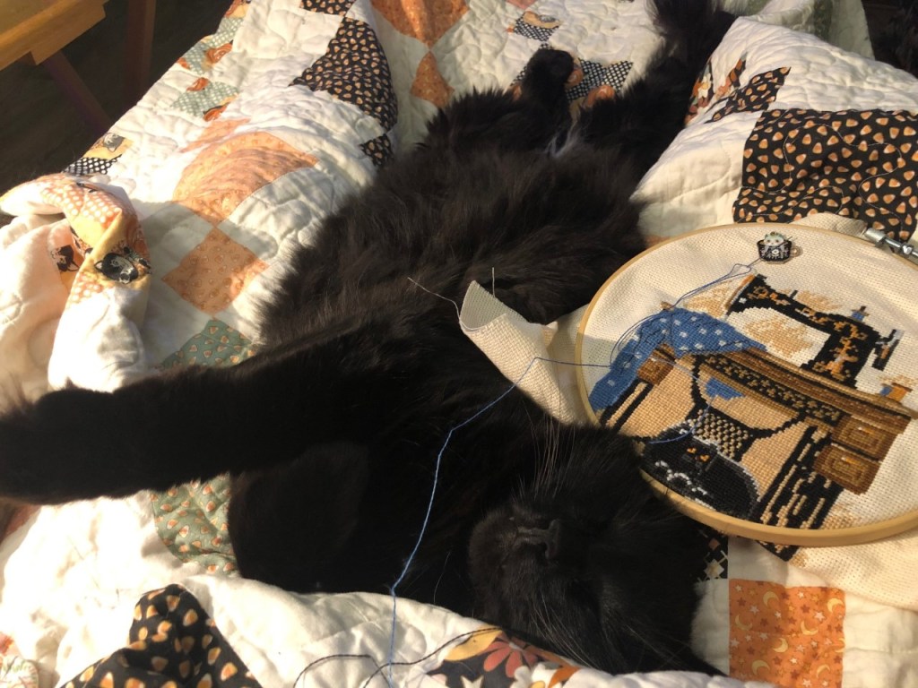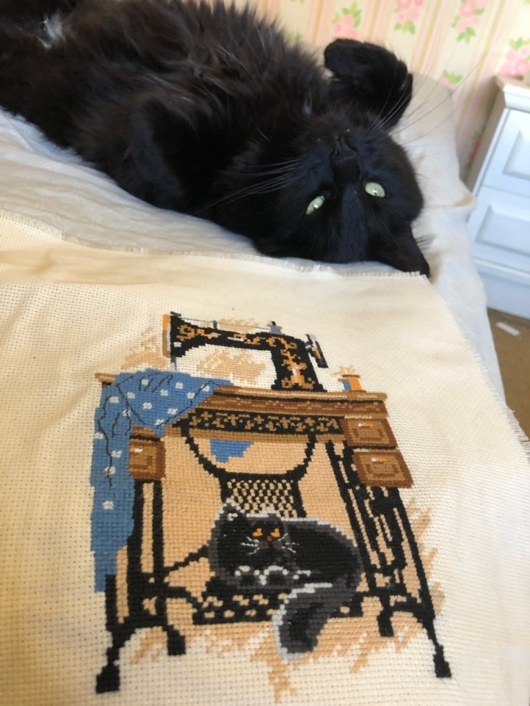 I really love it Val. So many memories it brings back for me. My Grandma’s machine looked just like it and I spent so many happy hours there. LBB approves too. It looks so much like him napping on the treadle. 🙂