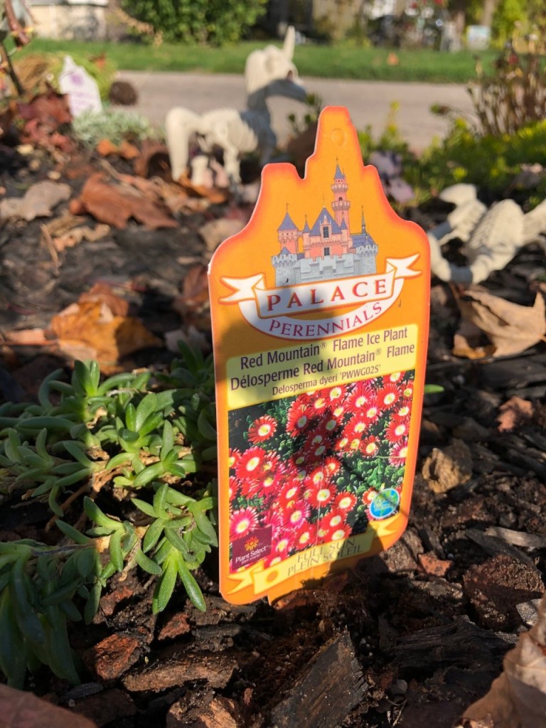 The pussytoes I had to get just because of the name. But it’s a nice little ground cover plant so it went in the driveway garden. I also added two ice plants. They are also supposed to be great for groundcover too. I tried tog grow them at the townhouse a couple of times with no luck. I planted one here in mid summer. It didn’t bloom, but it’s nice and healthy so I figured why not get a couple more.