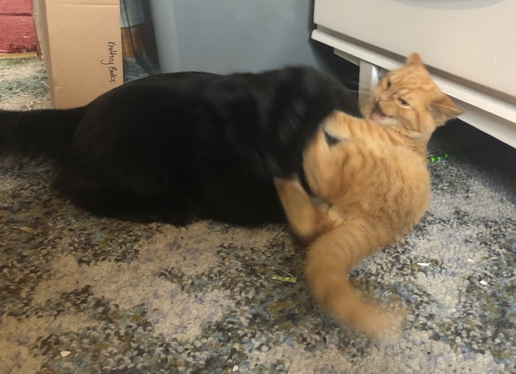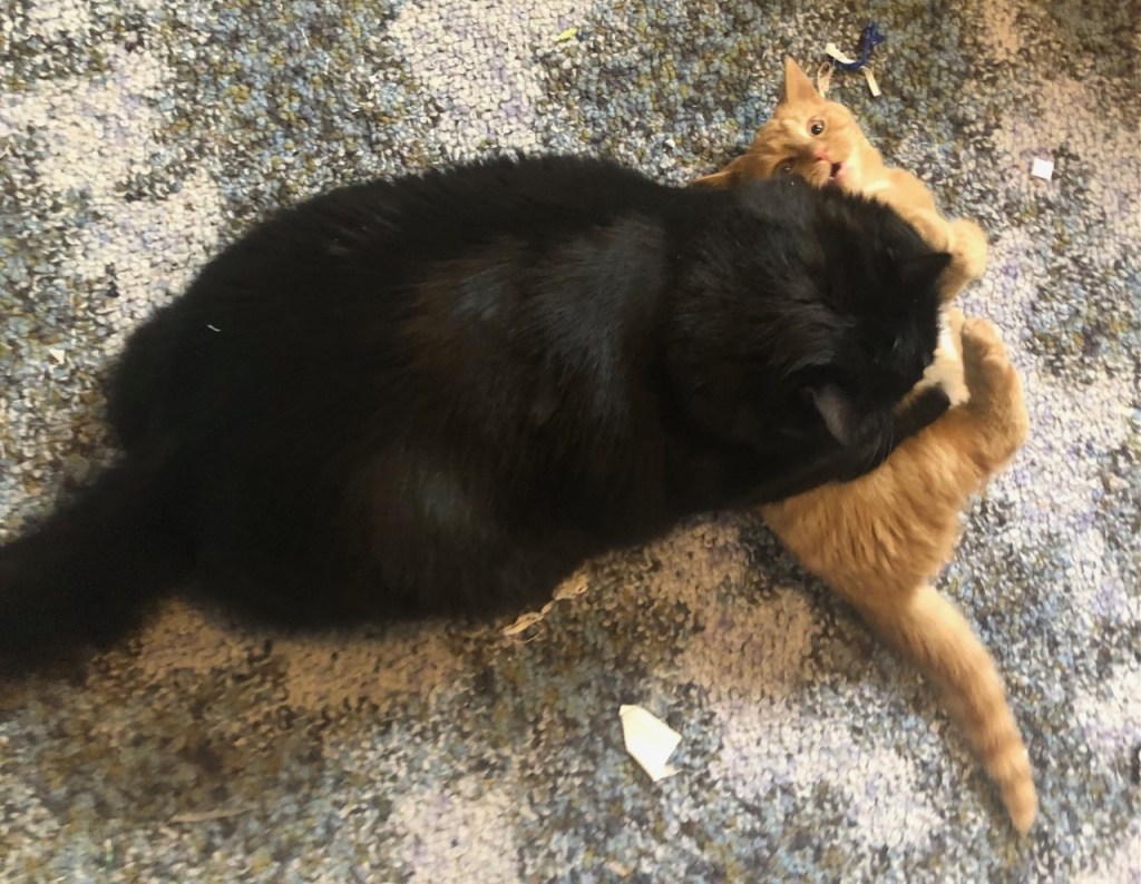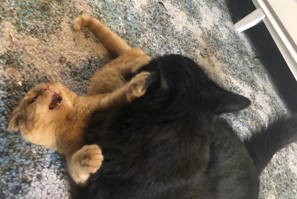 Though they spent most of their time wrestling on the sewing room floor behind me.
