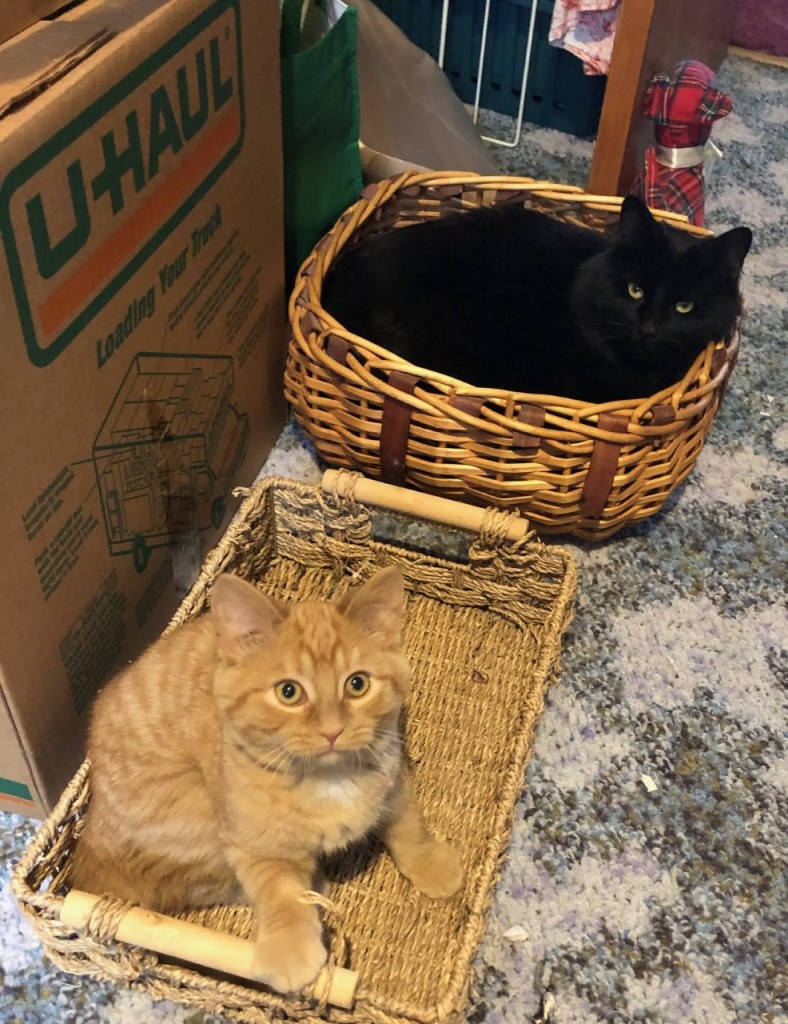 Eventually they settled down into separate baskets and let me get some work done.