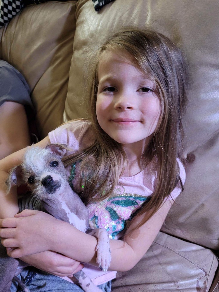 Oh what a sweet little girl and Kermit is adorable. Since we got Zoey, I’ve become much fonder of chihuahua mixes. She and Lizzie are the most loveable dogs I’ve ever come across. So affectionate and not a mean bone in their bodies. Krista is going to have a wonderful time with her new companion.