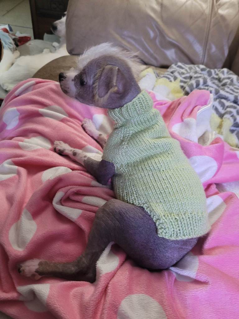 Kermit’s new sweater arrived mid-week and neighbour Krista immediately sent me photos