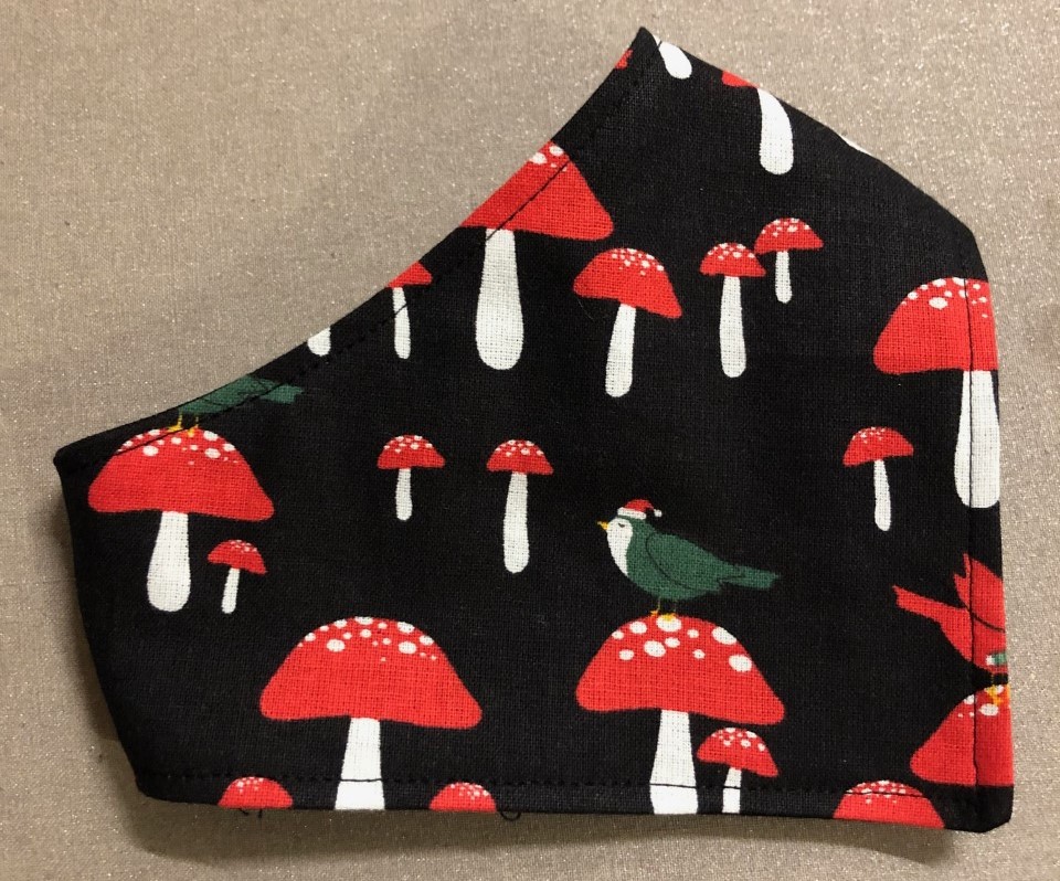 I found this cute fabric at Walmart – I didn’t realize it was Christmas fabric at first – I just saw the mushrooms. I got it home, unfolded it, and that’s when I saw the Christmas birds!