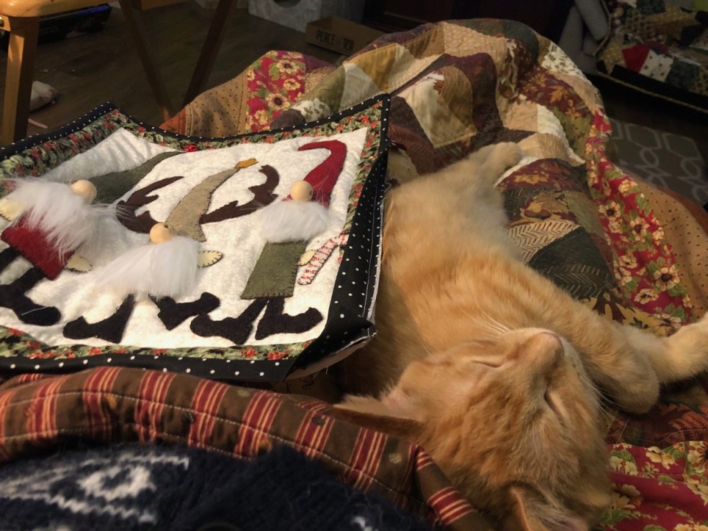It felt like I just couldn’t find a minute to sit down an finish the binding on my poor Christmas Gnomes. But then Lemmy forced me to stop, and I took advantage of the imposed downtime.