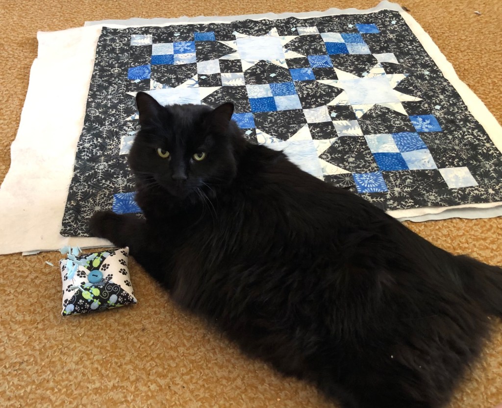 Such a spoiled kitty! But a handsome one. And, with all the help he provides you, he certainly deserves his own special quilts!