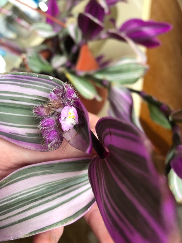 Did you know Tradescantia (inch plant) blooms??? I had no idea! Apparently Mom did. And so did Samantha. And Krista! Maybe I was the only one. Either way, I was thrilled to find this one (which lives in my bedroom window) blooming away!