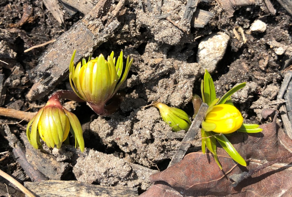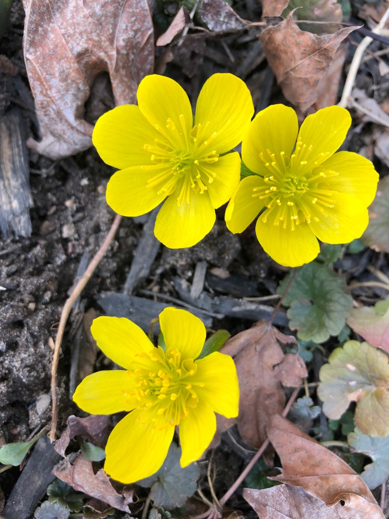 We have winter aconite in our grass. Grrrrrrr… Not even sure how it got there. I’m thinking of transplanting some of it to the front garden where we need some “ground cover”.