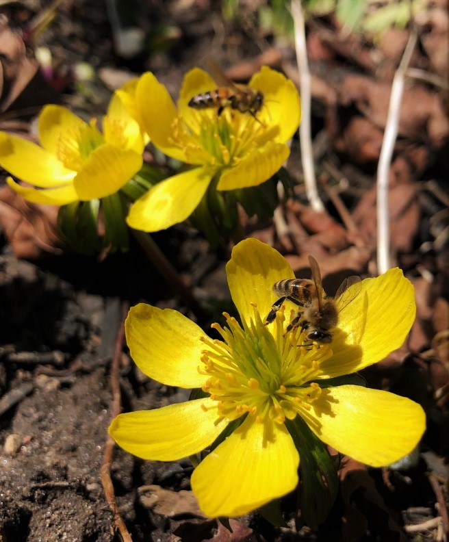 The bees must be feeling the same way. There’s not a lot out there for them right now, so my Winter Aconite has been very popular!!!!