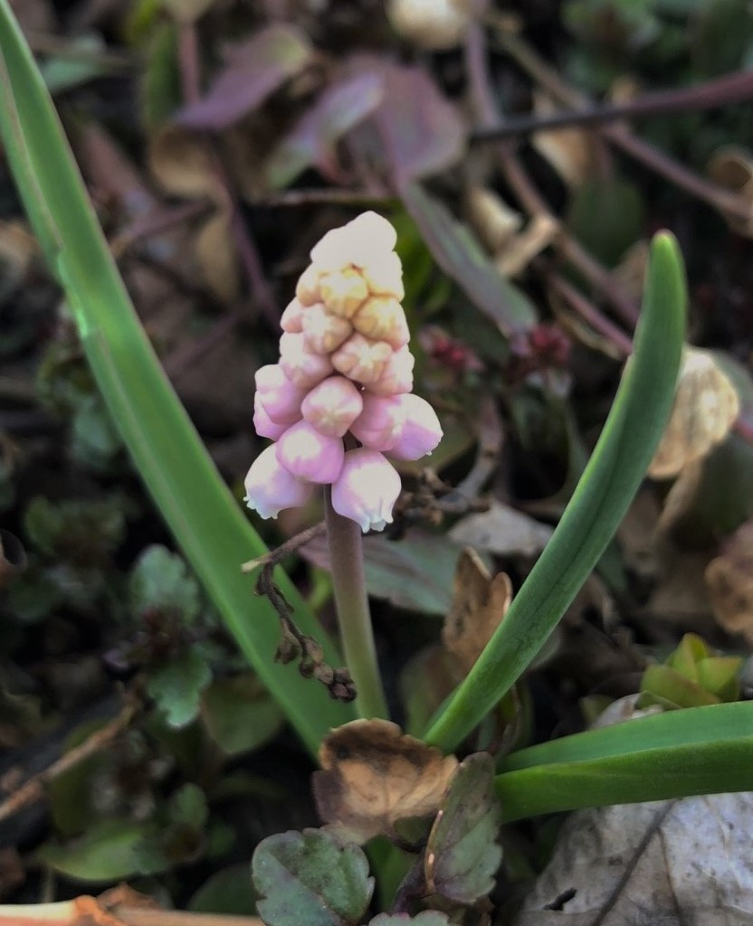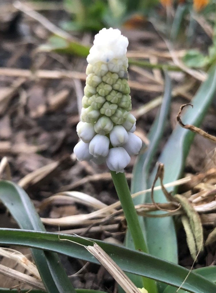 The Grape Hyacinths are just getting started adn as you can see, I have three colours. The traditional blurple, a pale pink (which I’ve had previously), and a new, solid white one! And these will multiply year after year.