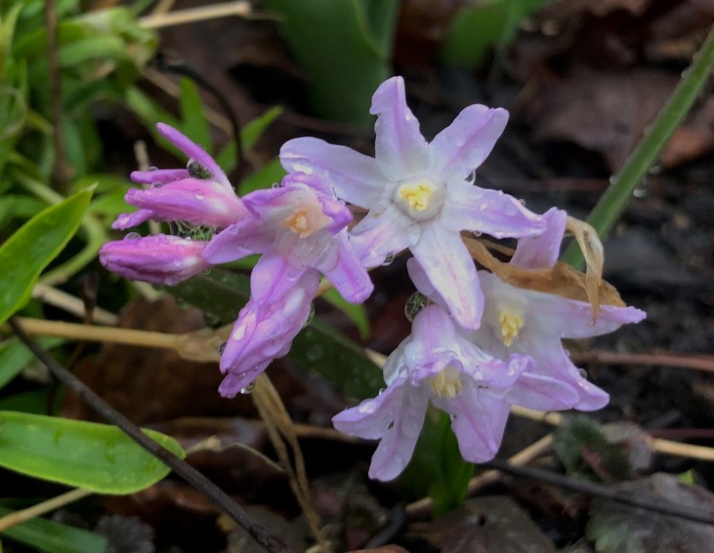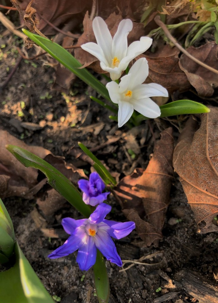 I showed you some of the Glory of the Snow last week, but at that time it was only the light pink ones. But now I have blurple and white ones coming up too. Like the grape hyacinths, these will multiply year after year. Mom has a stunning show of the blurple ones in her garden.