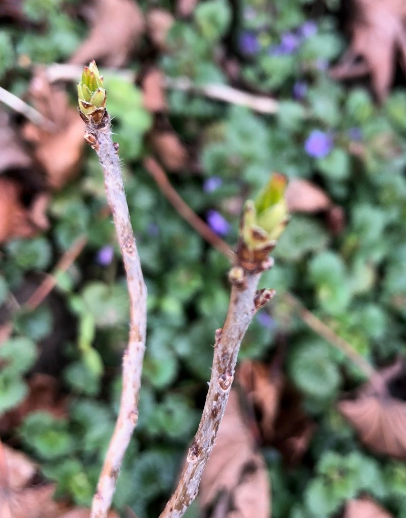 And signs of life in my Rhododendron. I was sure this shrub was dead. It didn’t look good before winter, and when nothing happened in March and Early April (when my other shrubs were budding up) I figured it was a goner. But I went to pull it out and low and behold… two tiny little leaf buds.