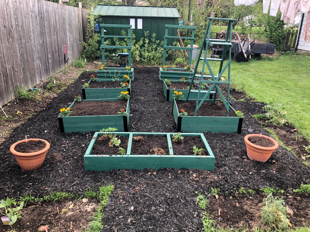 Your garden area looks fantastic. I can’t wait to see it when everything is flourishing. I looked for some marigolds and small geraniums yesterday and was shocked by the prices for small plants. I’ll look around some more and hope I can find a good deal.