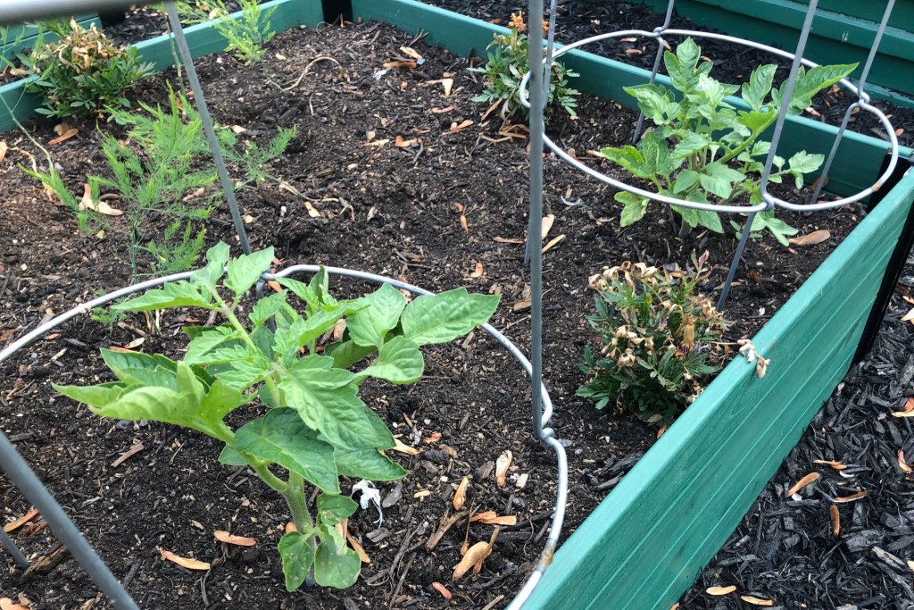 The cherry tomatoes, which are the only pre-grown veg I bought, are doing really well.