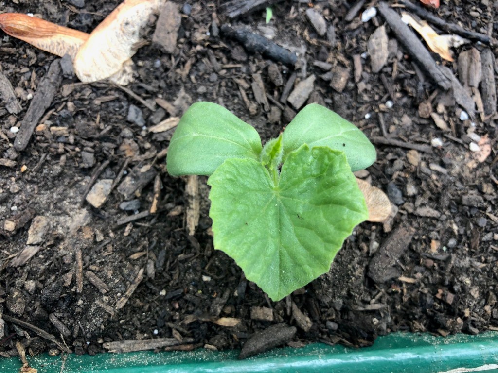 There are quite a few cucumber sprouts and they are just starting to get their true leaves. When I was a kid, we grew pickling cukes, as Mom made lots of pickles. I don’t make pickles, so these are an eating cuke. It will be fun seeing how well I do with them.