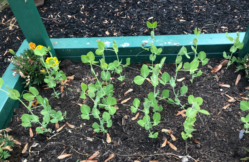 The snap peas are also doing really well. I have to get some strings up for them to climb soon.