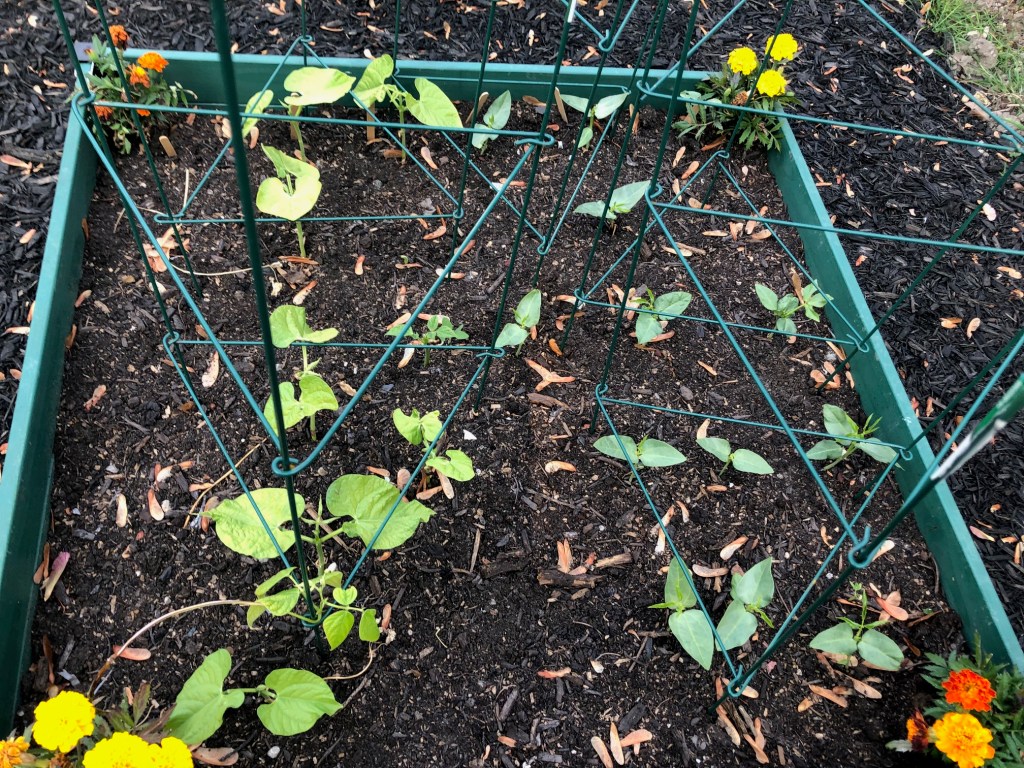 The beans are also doing well. I have two types – Tender bean and Long bean. Dave likes to eat beans raw right off the plant, so hopefully these do really well and he gets lots of snacking opportunies.