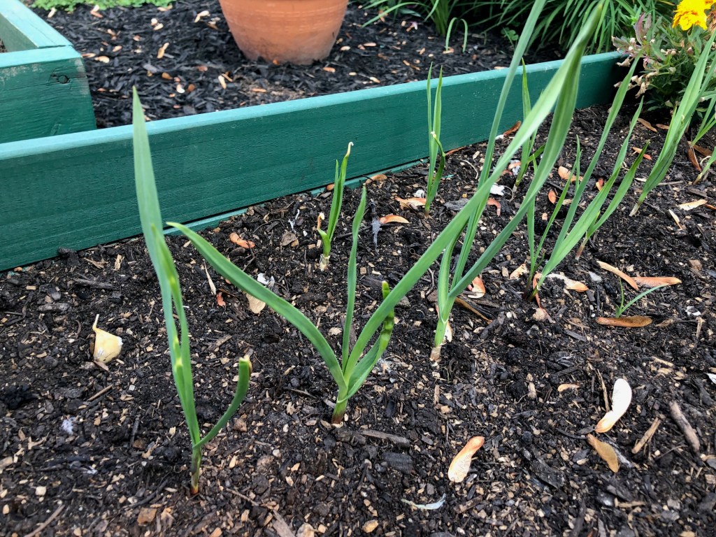 Last is the garlic. I’ve tried growing garlic before, with not-so-stellar results. I’m hoping this has a better turn-out because I absolutely love cooking with fresh garlic!