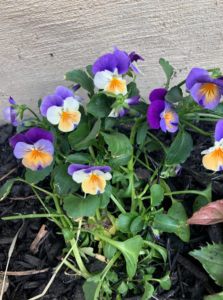 Some begonias and some violas. There’s a few colours of violas, but those are the only ones blooming at the moment. I also planted a few impatiens, but they aren’t blooming yet either.