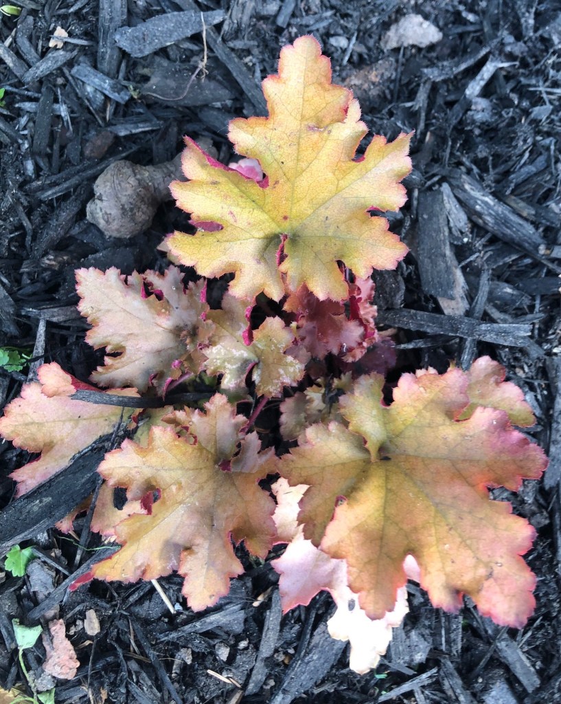 I love Heuchera, and they come in a great range of colours. They will also get tall spires of little bell-shaped flowers.