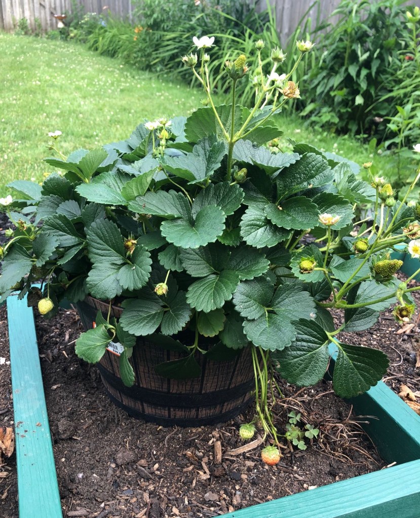 It did pick up some new strawberries plants. Home Depot had this bucketful for a very good price. I’ve got to split them up and plant them out into the strawberry box.
