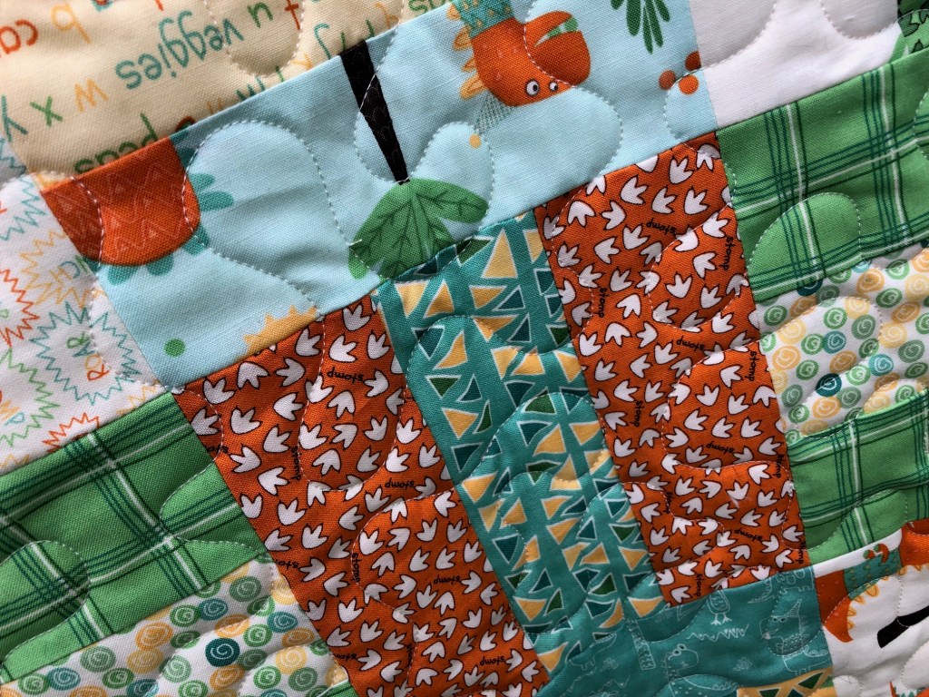 I love the colours and the cute little dino quilts! As much as I love making scrap quilts, I still love making them with coordinating fabrics too.