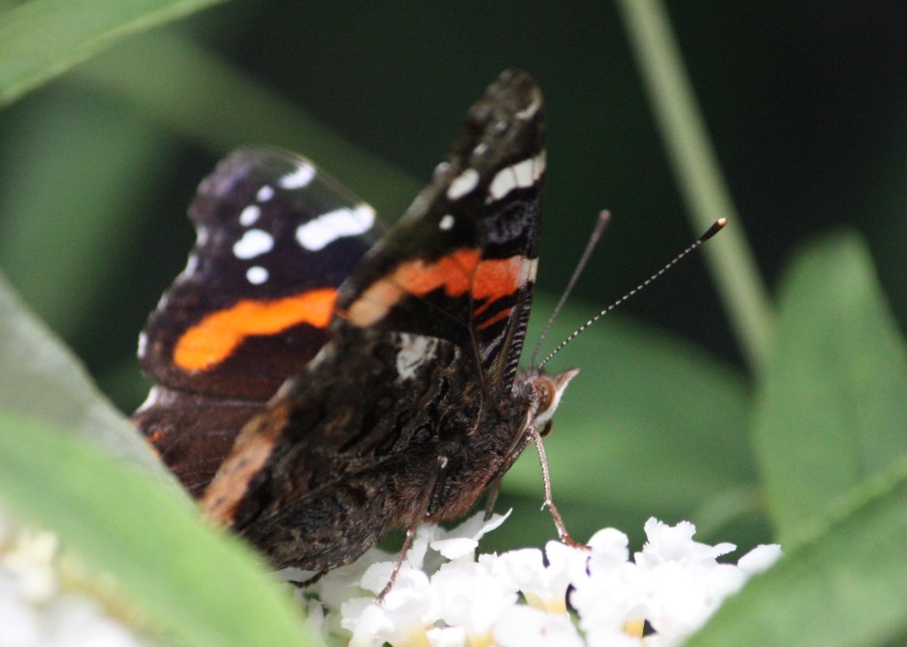 I always thought they were an early season butterfly. They were always one of the first butterflies to arrive, along with the Cabbage White. But I rarely saw them past June. But not this year. I went out the other day and there were no less than SEVEN on White Profusion. And that doesn’t include the other ones that were flitting about elsewhere in the yard. I’ve recently learned that there host plants are nettles, and there are certainly lots of them around here, so I’m guessing that’s why there are so many. I’m certainly glad for it. I’ve found that Admirals are among the “friendliest” butterfly, more likely to land on me than the other butterflies.
