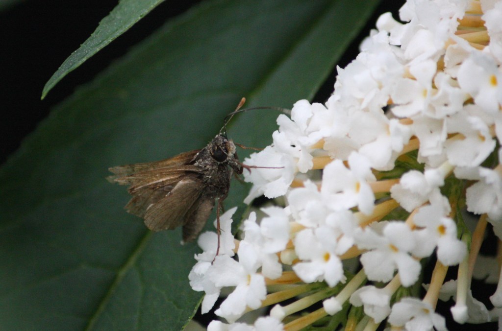 The one on the left, I think is a Dusted Skipper, while the one on the right is a Silver Spotted Skippers are generally very small – the Silver Spotted is the largest I’ve seen, and it’s about half the size of a Cabbage White.