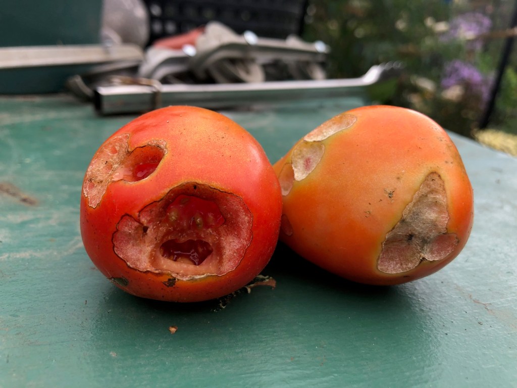 Such a huge difference in the garden. You deserve lots of good food from your yard with as much time and you put into it. Those Roma’s look delicious, well, except for the bitten ones, but somebody found them good!