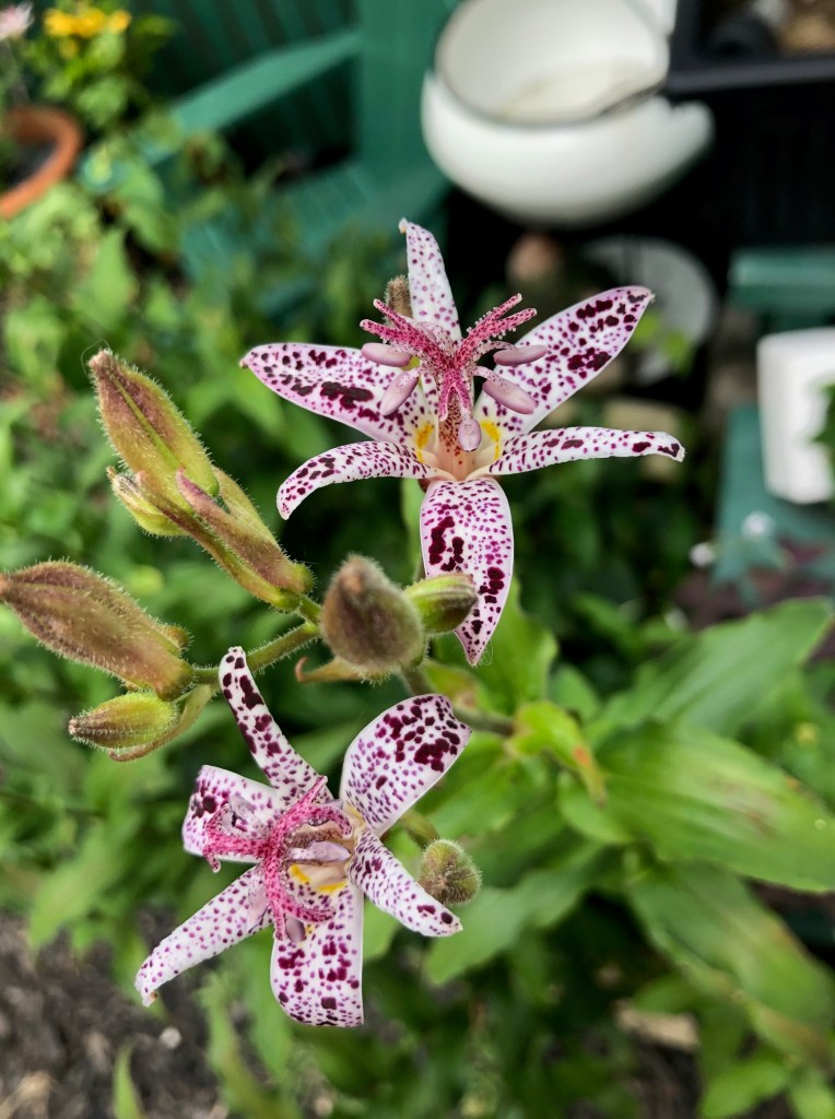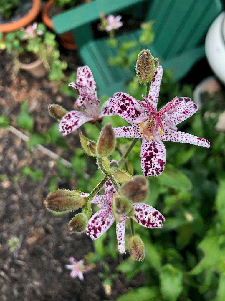 Like the Toad Lilies. These guys are nothing but leaves until September (and sometimes October, depending on their light conditions). But then bam – those cooler nights hit and they start popping out small speckled blooms all over the place.