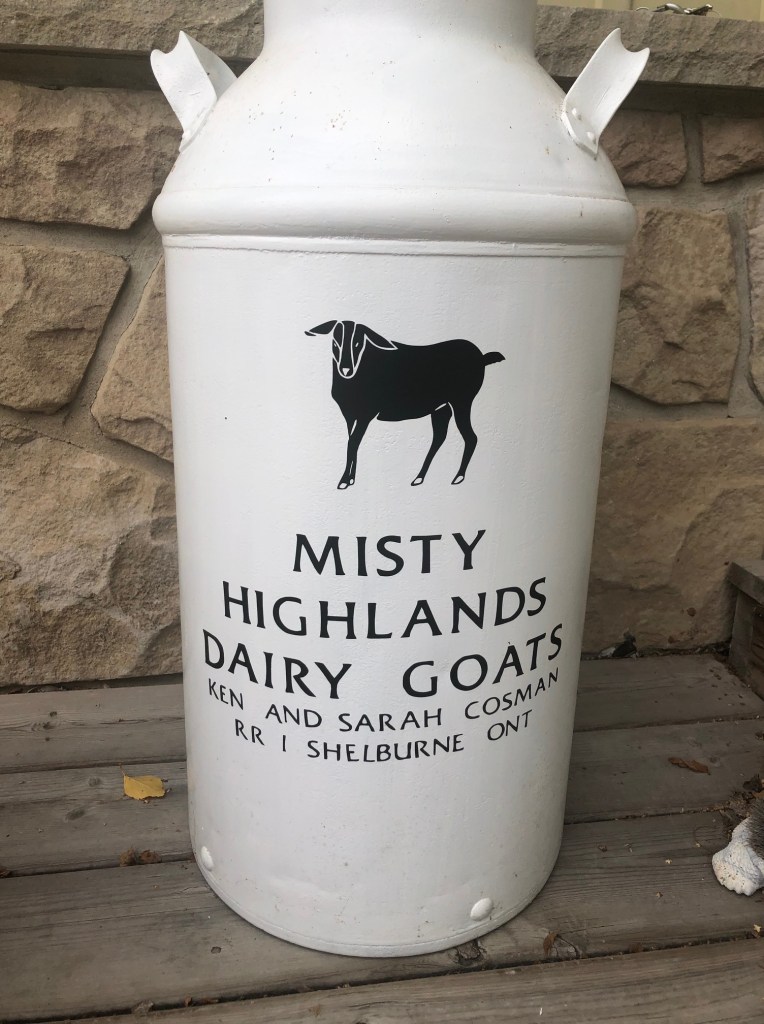 You may recall that I have two old metal milk cans, one of which came from Dave’s grandma’s house (and may or may not be from the farm – we can’t be sure). I painted them white, with the intention of decorating them and putting them in the garden.