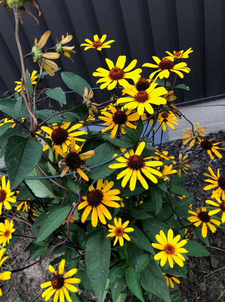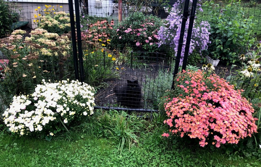 Next year I have to find a better spot for it because it’s just too big for the catio yard. It’s tall. If it was properly supported, it would easily reach six feet. I tried to get it stake up in the mid summer and I only half managed it. So now I have this wild, waterfall effect, with purple flowers flowing EVERYwhere!!!