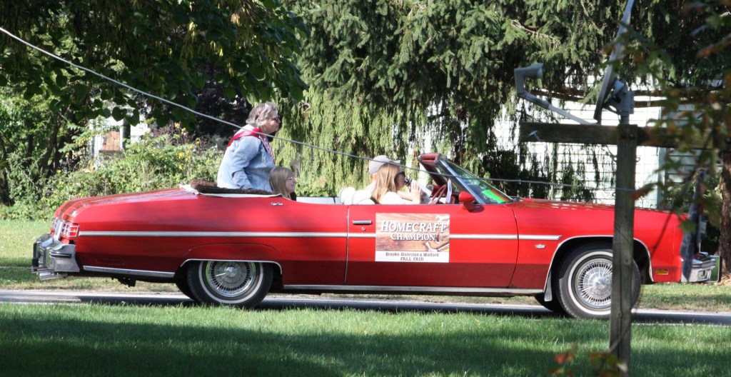 The local fair is on this weekend, and I’d forgotten all about the parade to the fair grounds. I’m not big on parades, but I do love pipe bands. I ran into the house to get my big camera with the long lens, because the parade route goes up the street behind the house.