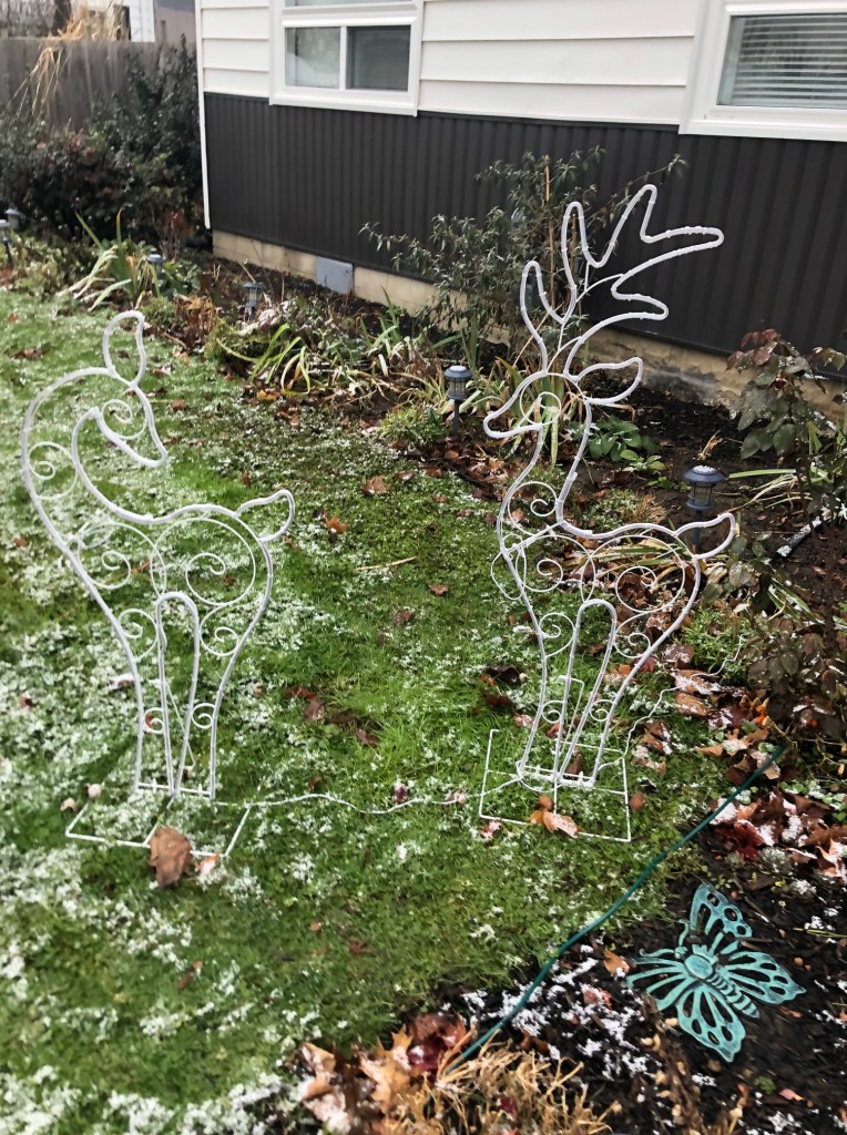 New to the lawn, facing the walkway, are a pretty little pair of deer. I actually had these last year, but never got around to putting them out.