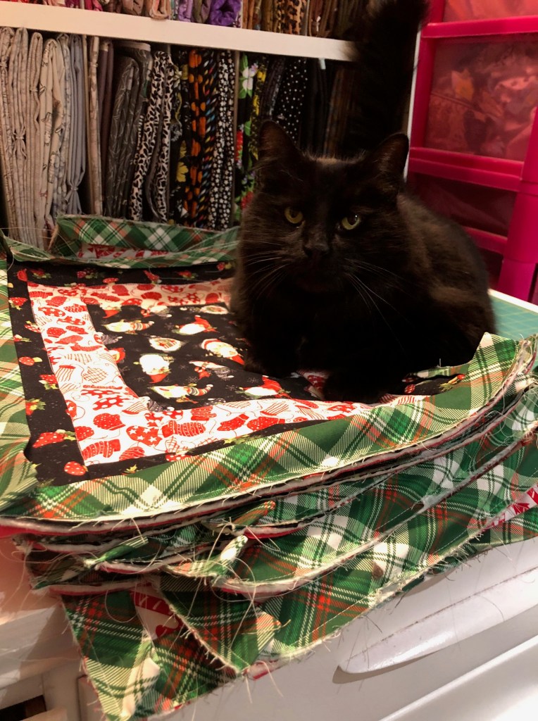 Except for this evening – it’s my birthday (44th) and Dave is taking me out for a late dinner. Binding can start tomorrow. Besides, Burton isn’t ready to give up his comfy spot yet.