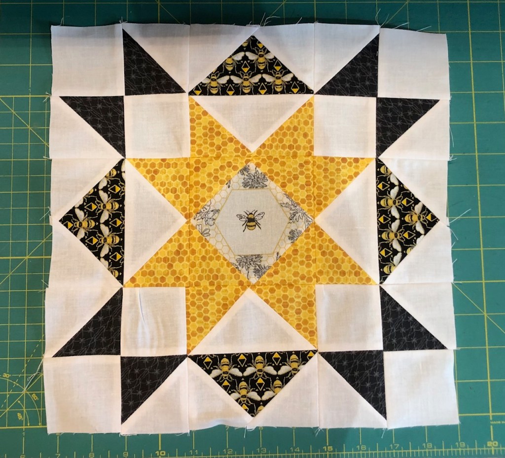 In stead of pulling one big fat quarter bundle, I found a small one, and pull a bunch of stash yardage to go with it. I’ve been collecting bee-themed fabric for a while, so I had quite a bit to choose from. It surprised me how much went together so well, even though they are from different companies and lines.