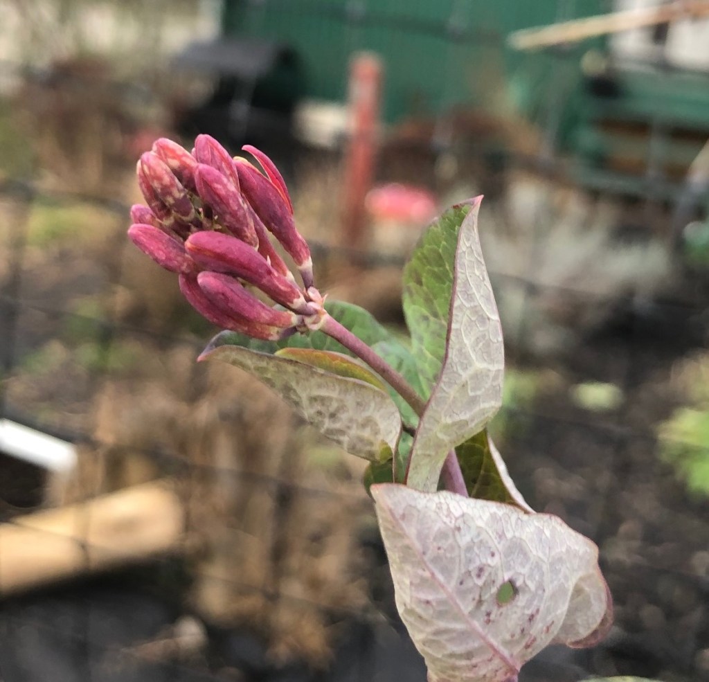 And that bud there, that’s a Honeysuckle bud. I doubt it will bloom – it’s been there since Christmas… but it hasn’t been cold enough to kill it and knock it off.