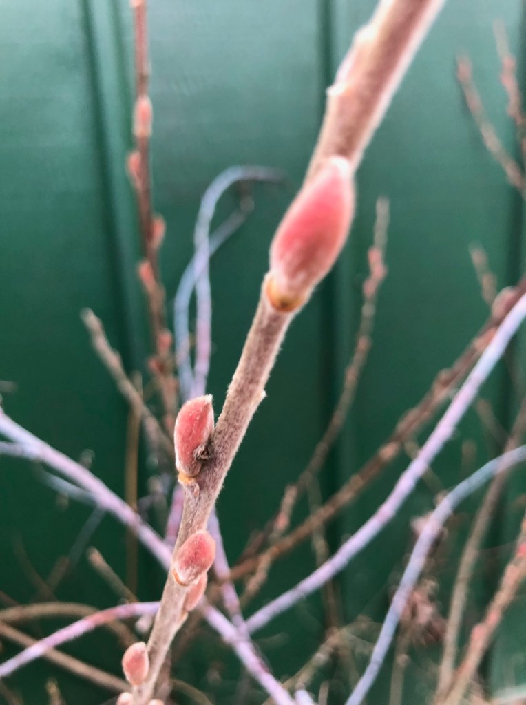 There sedum and peonies sprouting, and the pussywillow were putting on buds… it definitely didn’t have a January vibe in the garden this year.