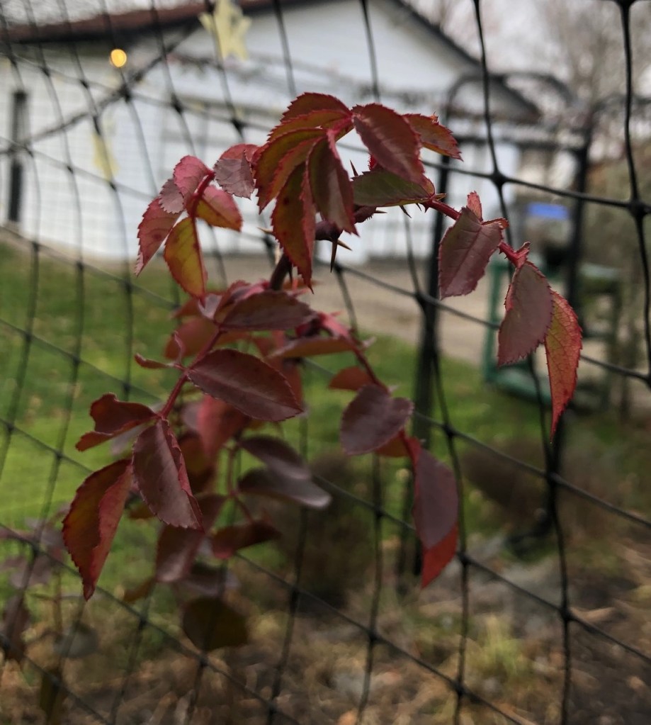 But the New Dawn Climbing rose has not only kept most of her leaves (as have several of the other roses) but she’s put on some new growth too.