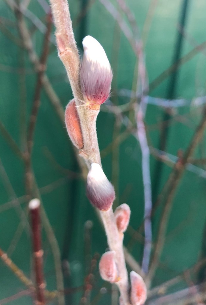 All three of the pussywillows are starting to show their catkins. I thought it seemed a little early, but looking back at last year’s photos, it looks like it’s about right on time.