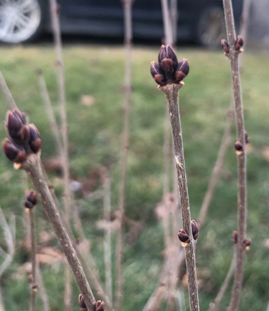 My Bluebeard shrub, and Tinkerbelle Lilac are budding.