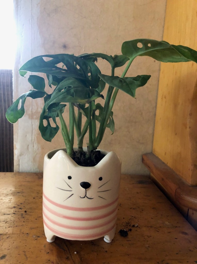 I also already have a Swiss Cheese plant…. but not one in a cat pot!!!!