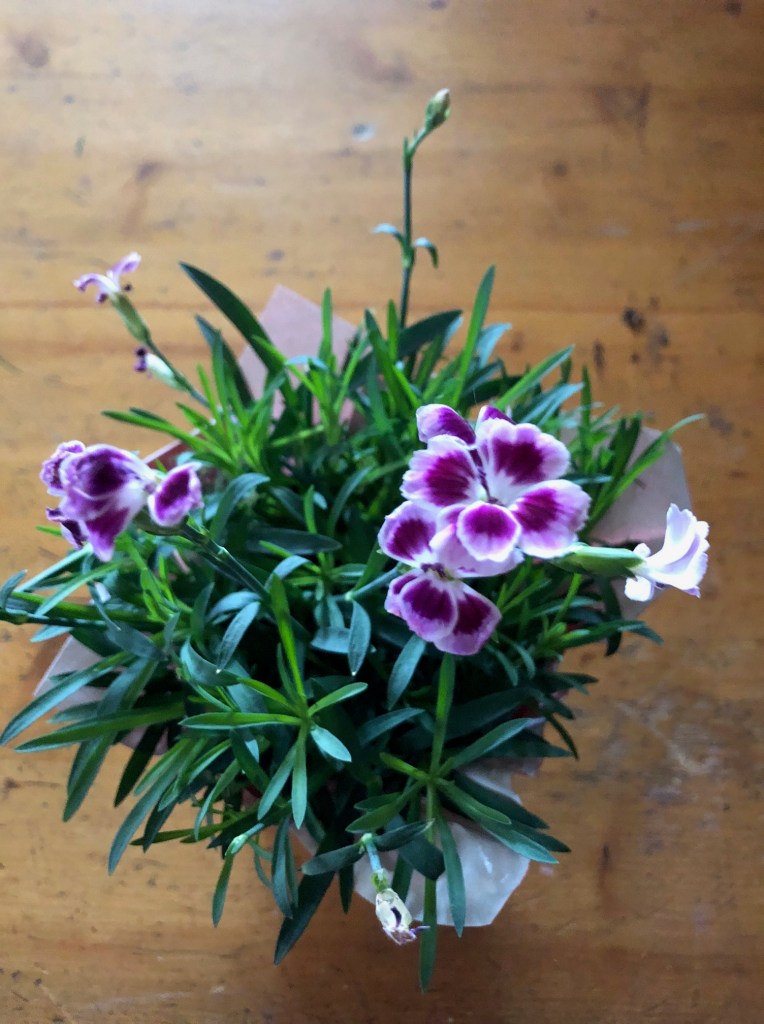It’s a Dianthan – just a tiny version different to the ones I have in the garden. It looks like Home Depot got them in for Valentine’s day. I’m not 100% that it’s hardy (the tag on the pot was useless) but it’s worth a try. It was going to die if I didn’t bring it home anyway!